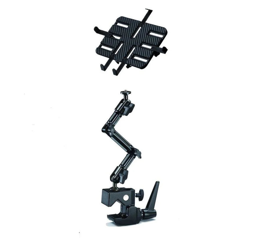 Universeller Tablettenhalter für die Superklemme auf Röhrchen und Tischplatten. Maximal einstellbar dank Ballkupplungen und schnellen Klemmen. Arm und Kopplung aus starkem und leichtem Aluminium. Die Klemmen am Plastikschale bieten Schutz vor Kratzern und sind mit Drehknöpfen auf der Rückseite ausgestattet, um die Tablette schnell anzupassen und zu versperren. Zusätzlich zu Tablet, auch dank des Standardkamerasfadens auch für die Kameramontage geeignet.