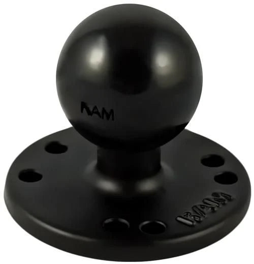 Le Ram-202U se compose d'une boule de caoutchouc de 1,5 "C de taille C connectée à une plaque ronde de 2,5" de diamètre. Ce composant de montage comprend des trous pré-percés en utilisant le motif de trou d'amplis universel.