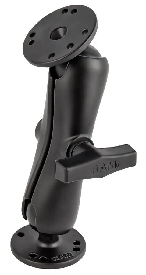 Le RAM-101U se compose d'un bras à douille double de 1,5 "à double tarive de 6 pouces et de deux bases à billes rondes de 2,5" de diamètre qui contiennent le motif de trou d'amplis universel. Le système de balle et de douille fournit un amortissement de choc et de vibrations et permet un réglage quasi-infini pour obtenir un angle de visualisation et de fonctionnement idéal de votre appareil.