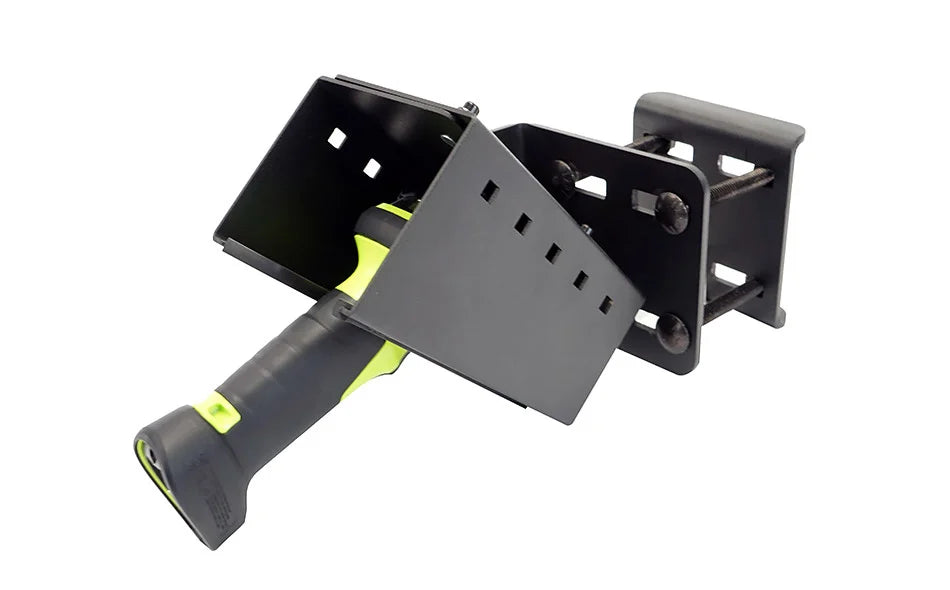 This scanner holder is designed to support your scanner or handheld in a rugged environment by holding it securely to the guardrail of your lifting vehicle. It is adjustable in width; and offers 3 mounting directions from the guard leg or one of our extension poles.
