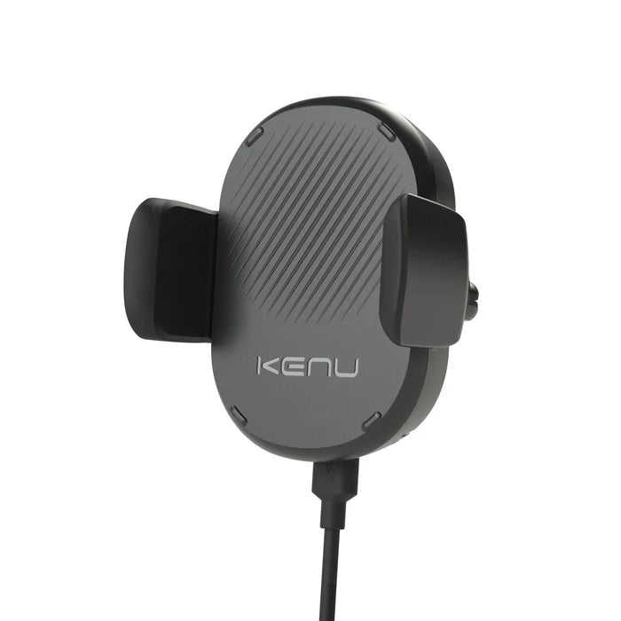 10 watt Qi-wireless charging with spring-loaded stainless steel + elastomer phone grips. Simply clip to your car's air vent.
