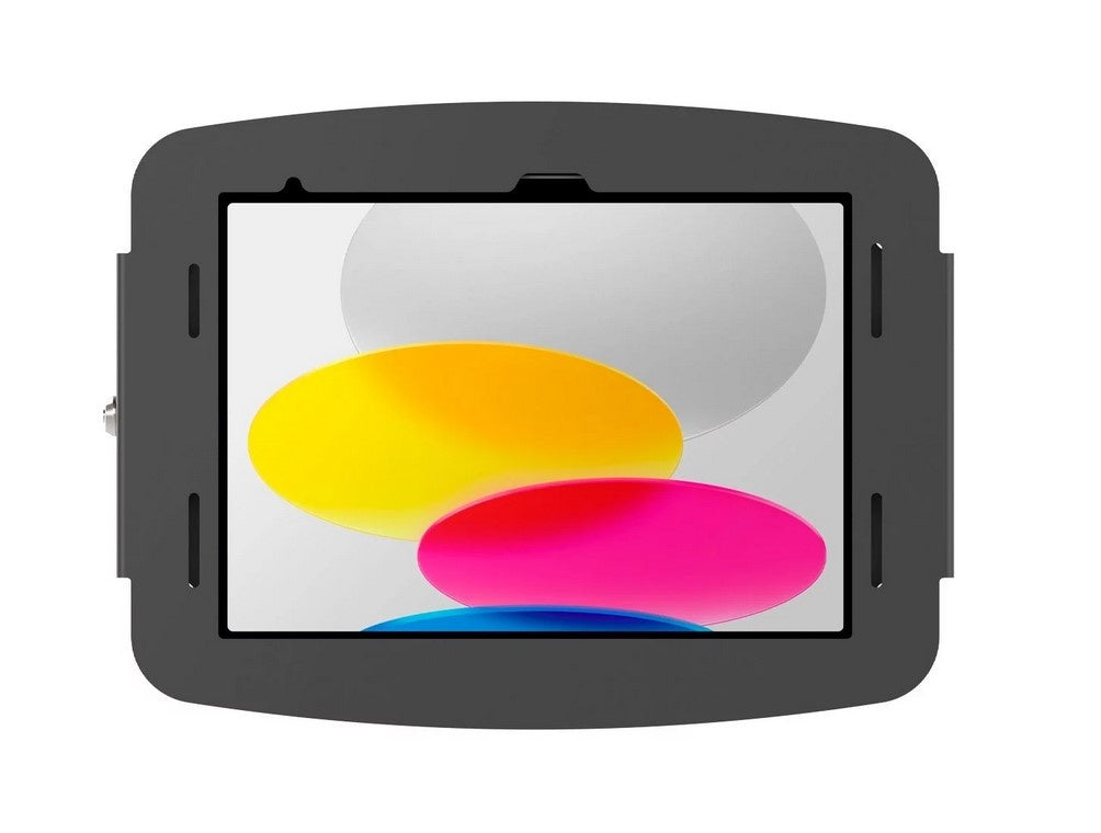 The Space iPad Enclosure features rounded edges and open corners for improved ventilation and allows for limited access to buttons and inputs.